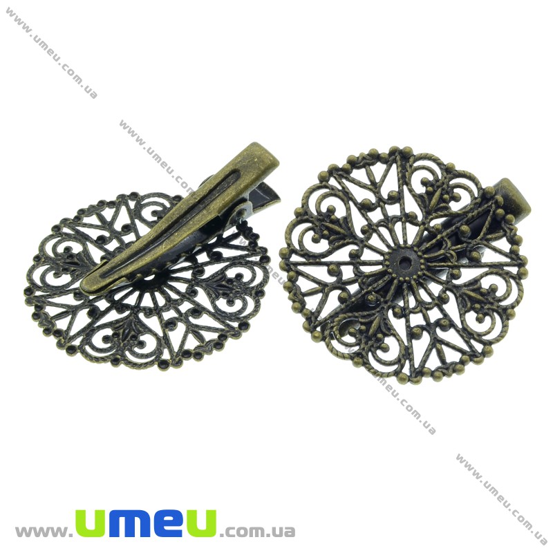 Основа мет. для шпильки крокодильчик (зажим) філігранна, 36 мм, Антична бронза (OSN-014587) / 1 шт