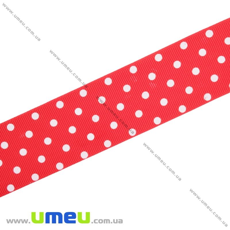 Репсова стрічка в горошок, 40 мм, Червона (LEN-016687) / 1 м