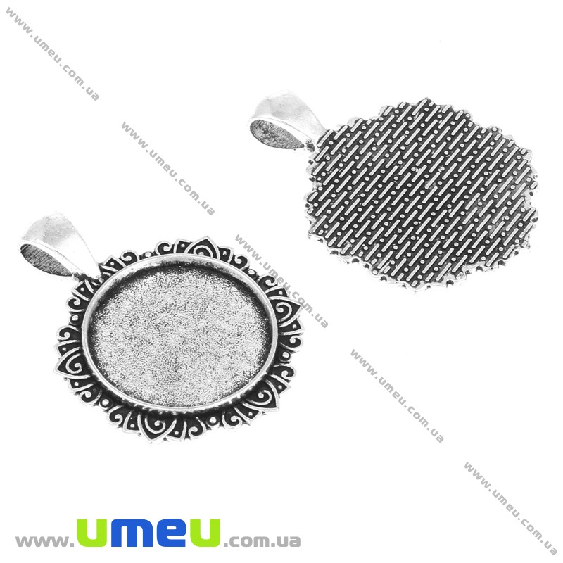 Основа кругла, 38х27 мм, 20 мм, Античне срібло (OSN-016858) / 1 шт