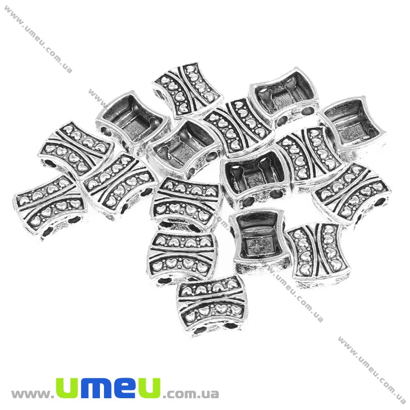 Намистини мет. на 2 отвори, 8х7 мм, Античне срібло (KON-016876) / 1 уп (10 шт)
