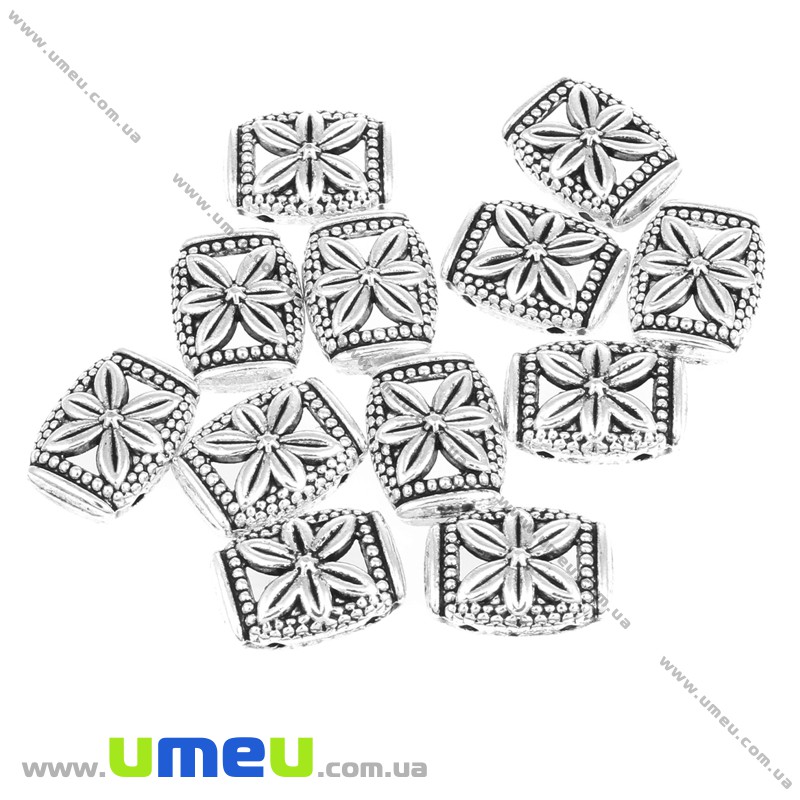 [Архів] Розділювач металевий на 2 отворів, Античне срібло, 14х10 мм (KON-016877) / 1 шт