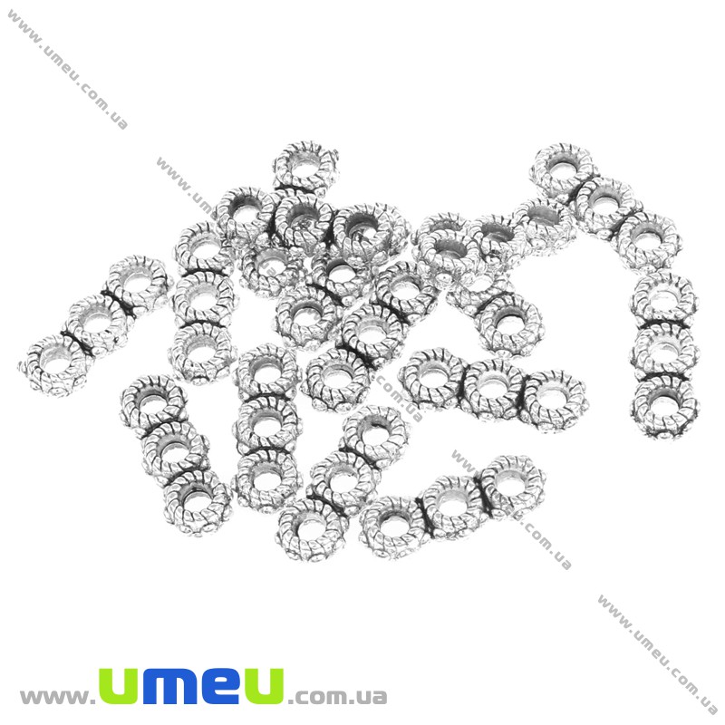[Архів] Розділювач металевий на 3 отворів, Античне срібло, 13х5х3 мм (KON-016878) / 1 шт