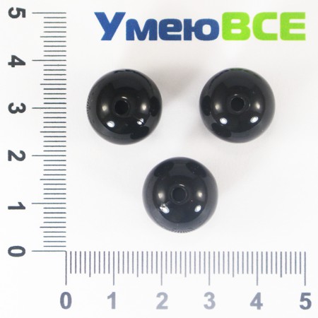 Намистини пластикові Круглі, 16 мм, Чорні (BUS-001785) / 1 уп (10 шт)