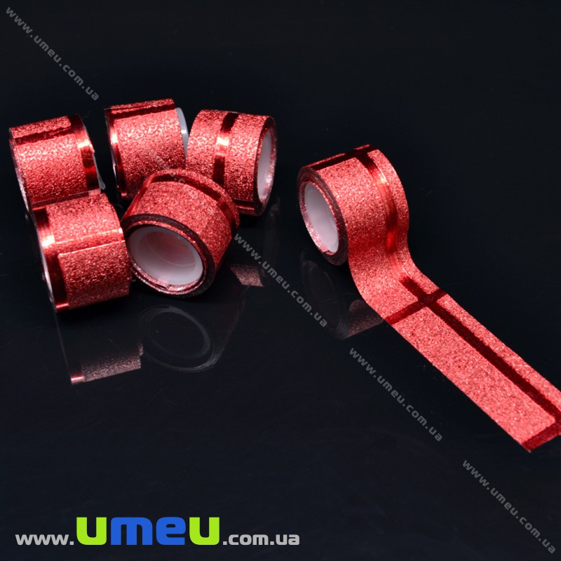 Декоративний скотч гліттерний, 11 мм, Червоний (DIF-017953) / 1 катушка (1 м)