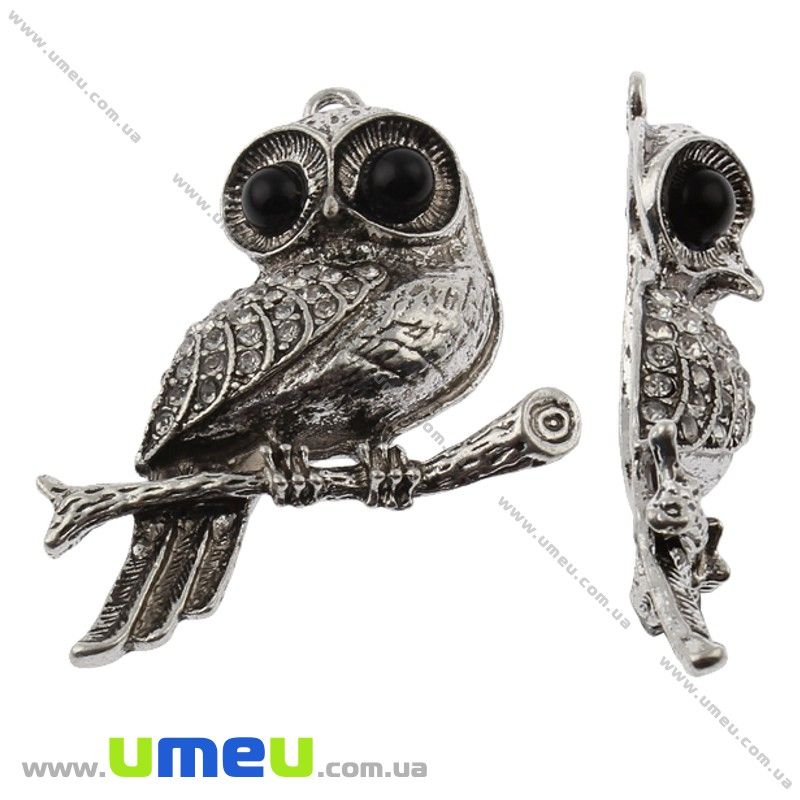 [Архів] Підвіска металева Сова, Античне срібло, 53х44 мм (POD-001834) / 1 шт