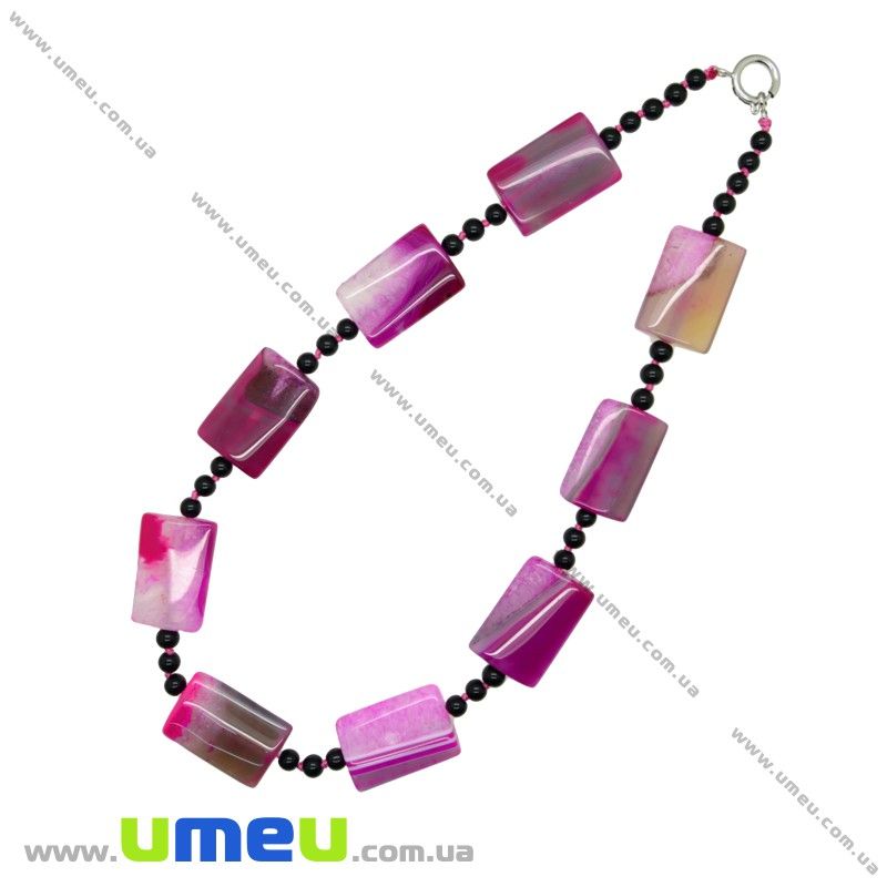 [Архів] Намиста з натурального каменю Агат, Рожево-чорні, 55 см (BUS-018537) / 1 нить