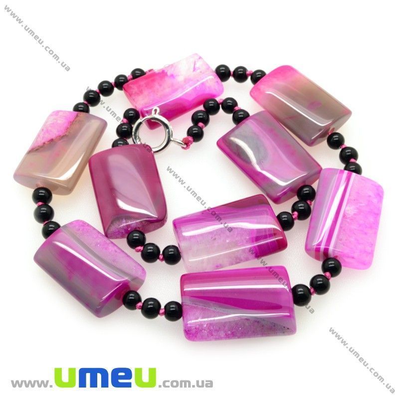 [Архів] Намиста з натурального каменю Агат, Рожево-чорні, 55 см (BUS-018537) / 1 нить