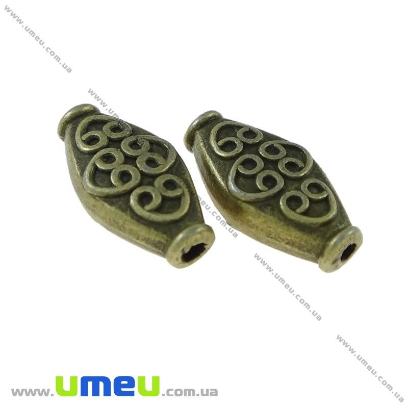 [Архів] Намистина мет. Ромб, 15х7,5х4,5 мм, Антична бронза (BUS-018688) / 1 шт