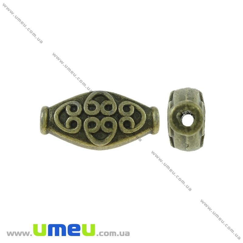 [Архів] Намистина мет. Ромб, 15х7,5х4,5 мм, Антична бронза (BUS-018688) / 1 шт