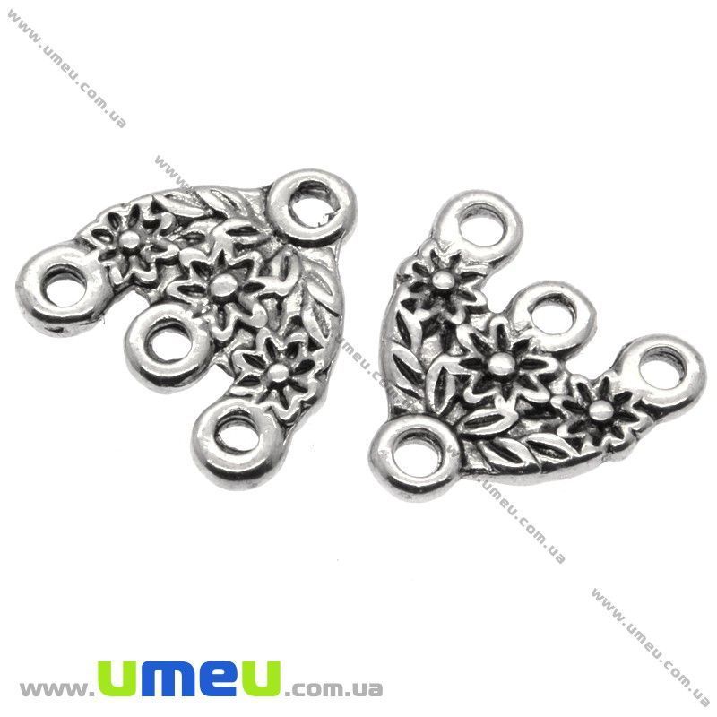[Архів] Конектор металевий Квіти (двухстор.), 15х15 мм, Античне срібло (KON-001950) / 1 шт