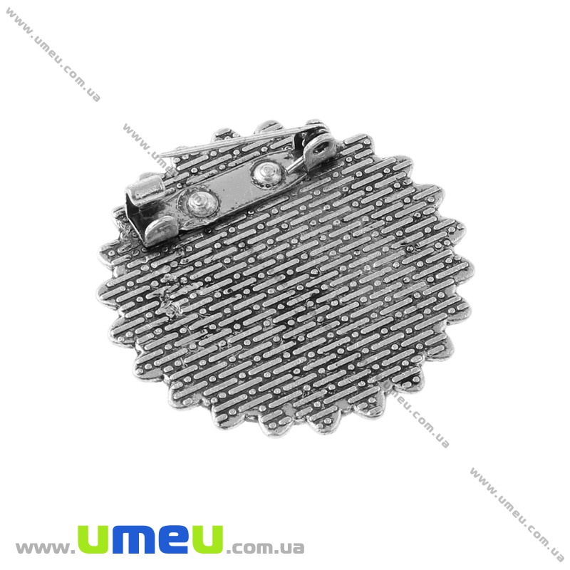 Основа для брошки під кабошон 20 мм, 32 мм, Античне срібло (OSN-019989) / 1 шт