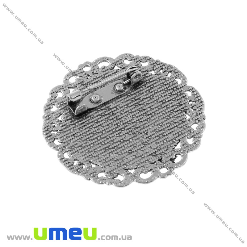 Основа для брошки під кабошон 25 мм, 39 мм, Античне срібло (OSN-019994) / 1 шт