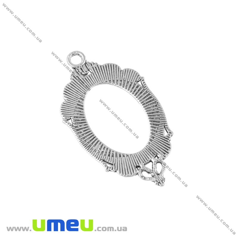 Основа рамка овальна, 42х24 мм, 25х18 мм, Античне срібло (OSN-020028) / 1 шт