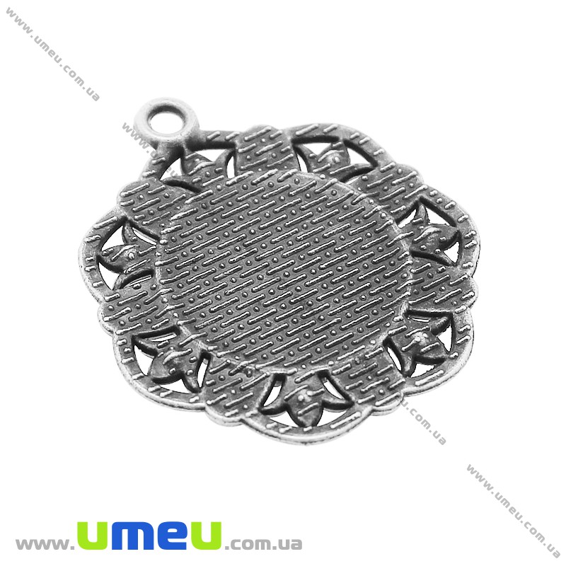 Основа кругла, 38х34 мм, 20 мм, Античне срібло (OSN-020061) / 1 шт