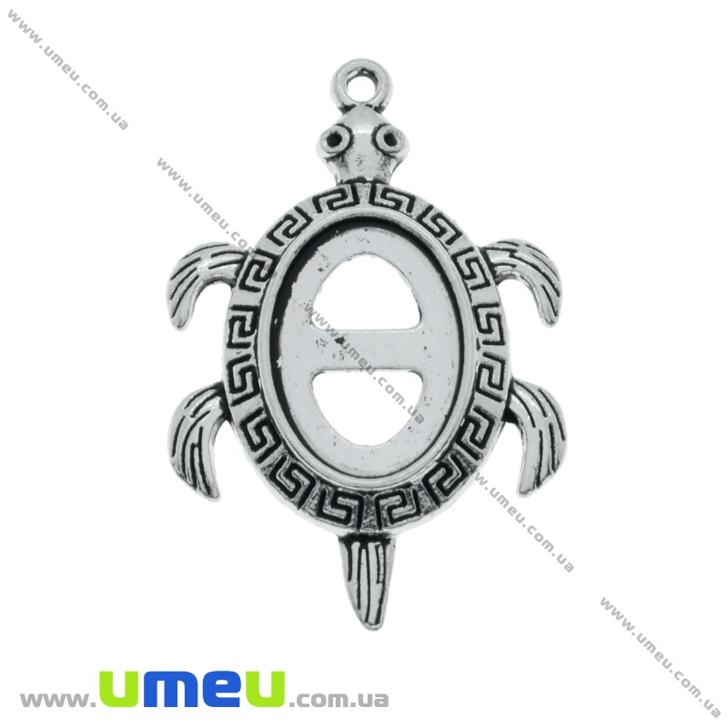 Основа овальна Черепаха, 41х28 мм, 18х13 мм, Античне срібло (OSN-020068) / 1 шт