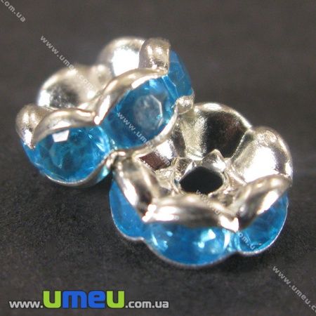 [Архів] Розділювач 8 мм, Срібло, Стрази пластикові яскраво-блакитні (OBN-002024) / 1 шт