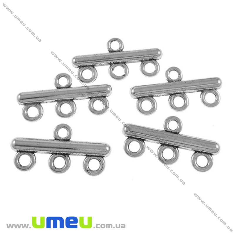 [Архів] Конектор металевий на 3 отвори, 22х11 мм, Античне срібло (KON-020279) / 1 шт