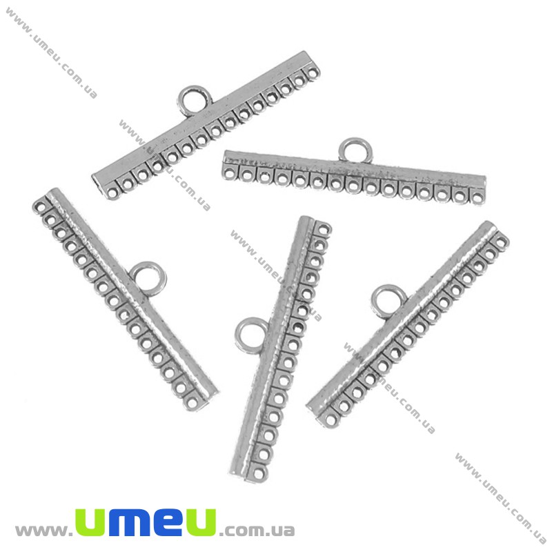 [Архів] Конектор металевий на 15 отворів, 45х11 мм, Античне срібло (KON-020280) / 1 шт