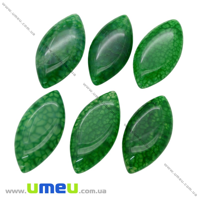 Кабошон нат. камінь Агат Краклє зелений, Човник, 40х20 мм (KAB-020299) / 1 шт