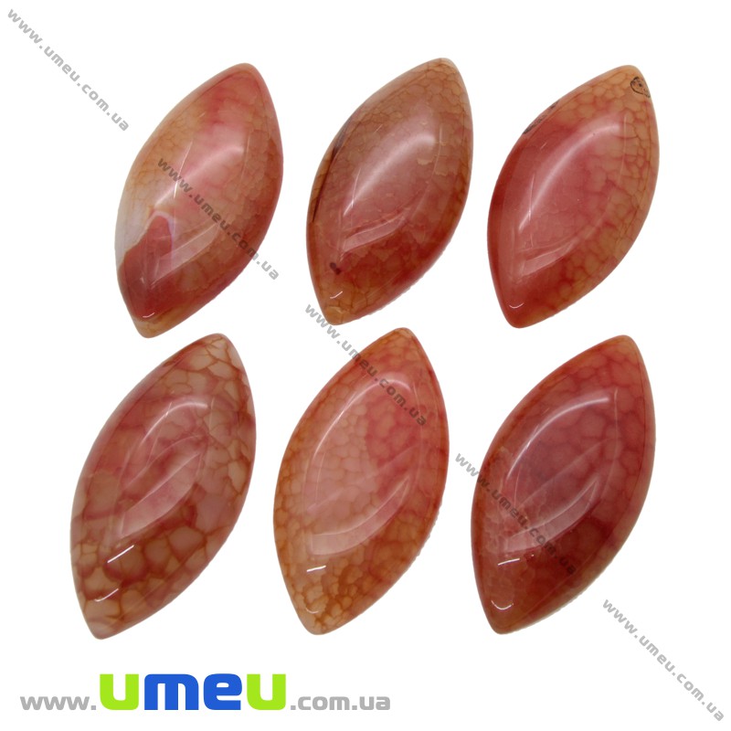 Кабошон нат. камінь Агат Краклє червоний, Човник, 40х20 мм (KAB-020301) / 1 шт
