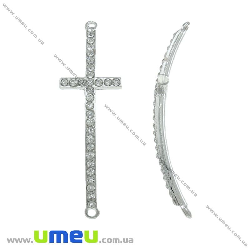 [Архів] Конектор металевий Хрест зі стразами, 53х15 мм, Темне срібло (KON-021072) / 1 шт