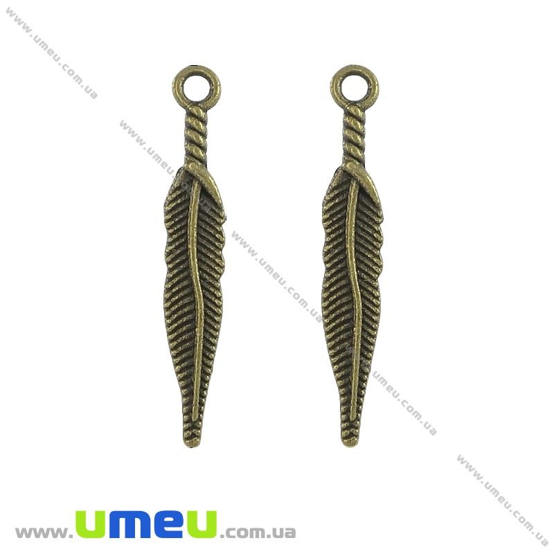 [Архів] Підвіска металева Перо (двухстор.), Антична бронза, 27х4 мм (POD-021099) / 1 шт