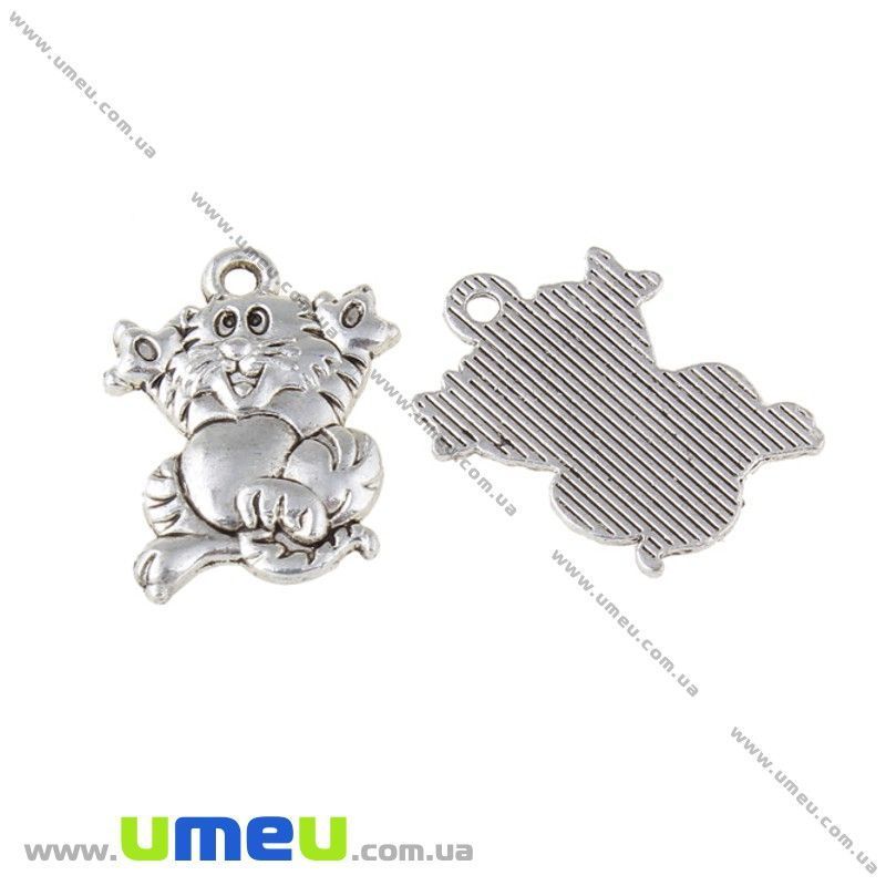 Підвіска метал. Кіт, 17х14 мм, Античне срібло (POD-021106) / 1 шт