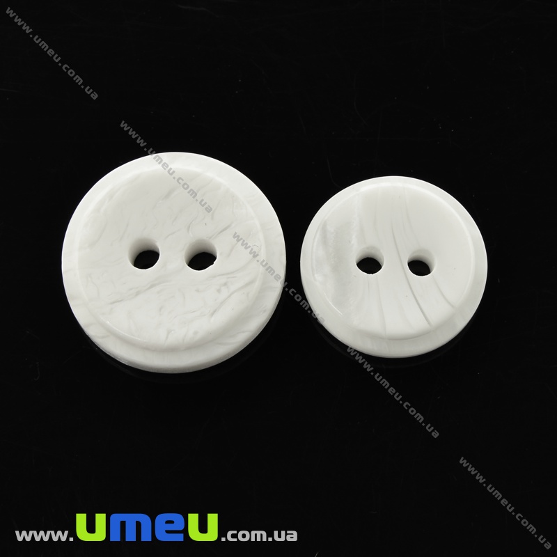 Гудзик пластиковий Круглий, 18 мм, Білий (PUG-021387) /