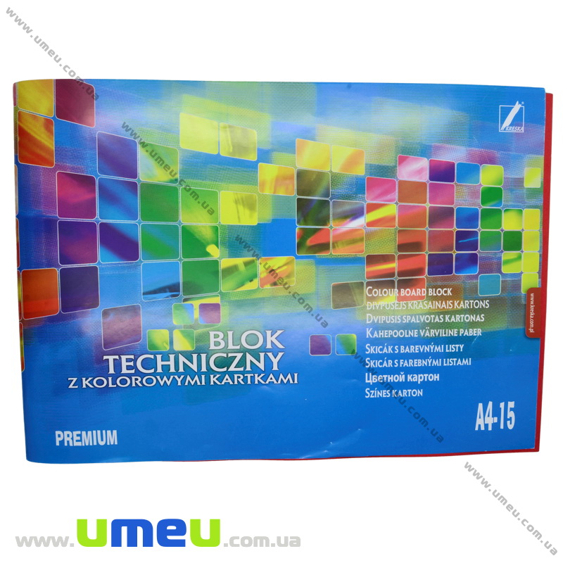 Картон двосторонній KRESKA, А4, 15 кольорів, 15 листів, 180 г / м2 (DIF-021695) / 1 набор