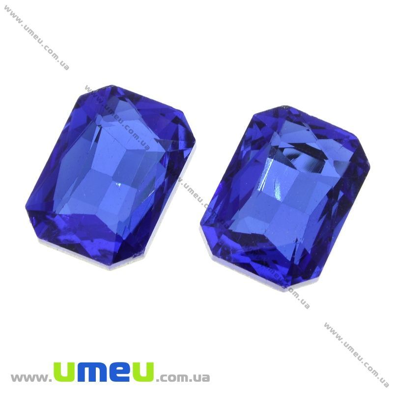 Ріволі скляний, Прямокутний гранований, 14х10 мм, Синій (KAB-021985) / 1 шт