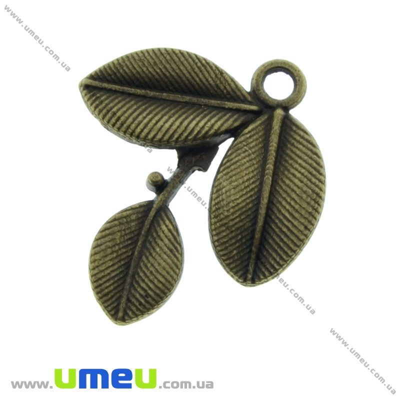 [Архів] Підвіска металева Листочки, Антична бронза, 27х23 мм (POD-000224) / 1 шт