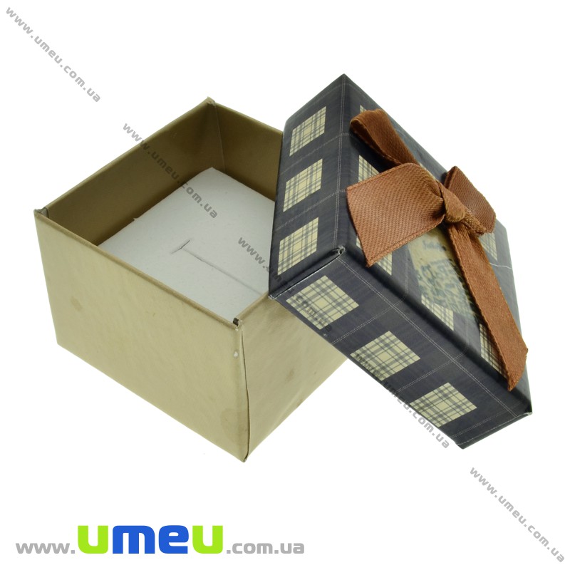 Подарункова коробочка Квадратна в клітку під кільце, 4,5х4,5х3,5 см, Синя темна (UPK-023067) /