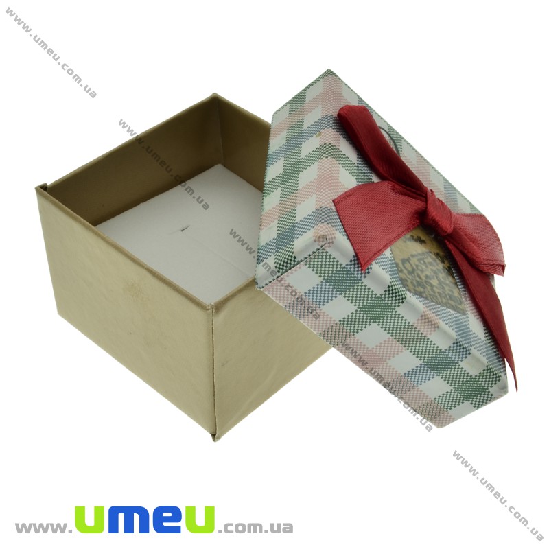 Подарункова коробочка Квадратна в клітку під кільце, 4,5х4,5х3,5 см, Біло-зелена (UPK-023070) /