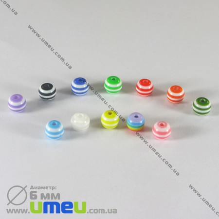 [Архів] Намистина пластикова Кругла Смугаста, 6 мм, Бузкова (BUS-002309) / 1 шт