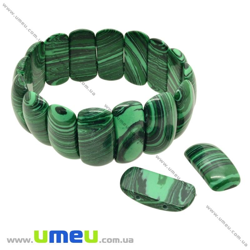 [Архів] Намистина натуральний камінь на два отвори Малахіт, 25х12х6 мм (BUS-023781) / 1 шт
