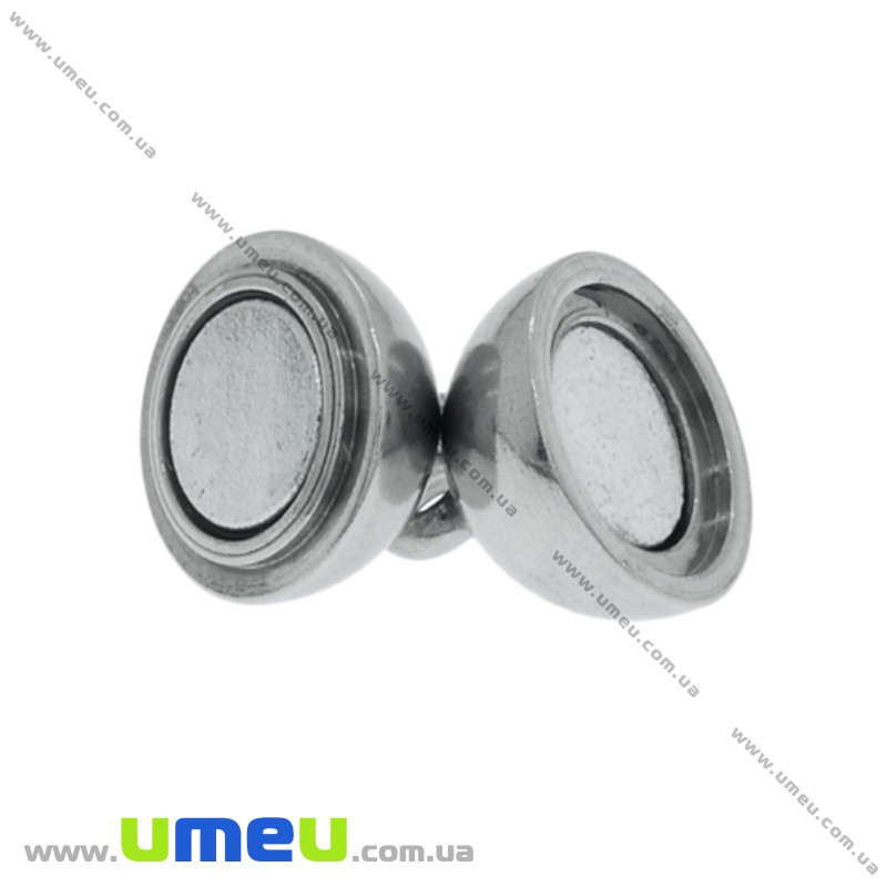 Замок магнітний з нерж. сталі круглий, 14х8 мм, Темне срібло (STL-023928) / 1 шт