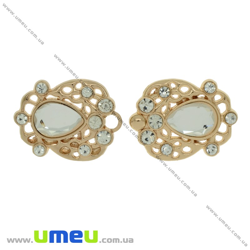 Пряжка металева роз'ємна зі стразами, 60х24 мм, Золото (SEW-023967) / 1 шт