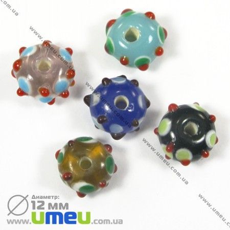 [Архів] Намистина Lampwork Мікс, 12х8 мм, Кругла плоска (BUS-002480) / 1 уп (5 шт)