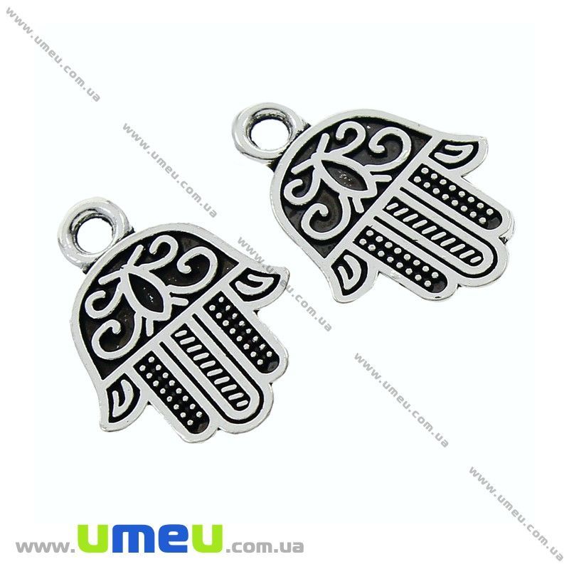 Підвіска метал. Рука Фатіми (Хамса)(двостор.), 17х13 мм, Античне срібло (POD-002530) / 1 шт