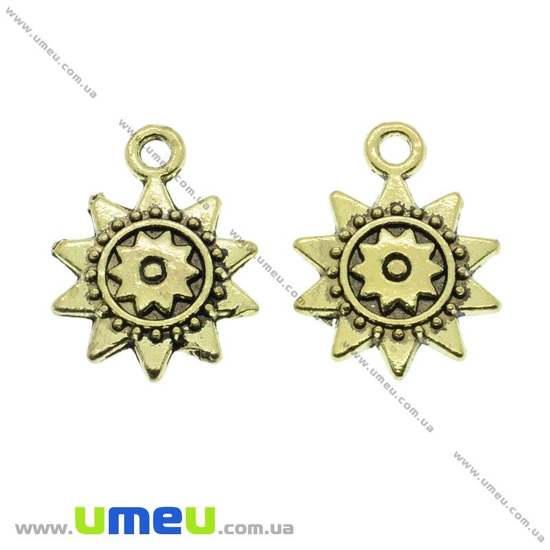 [Архів] Підвіска металева Сонечко (двухстор.), Античне золото, 18х13 мм (POD-025597) / 1 шт