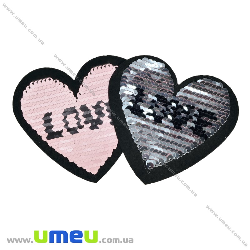 Термоаплікація двостороння Серце, 9х9 см, Рожево-срібляста (APL-025805) / 1 шт