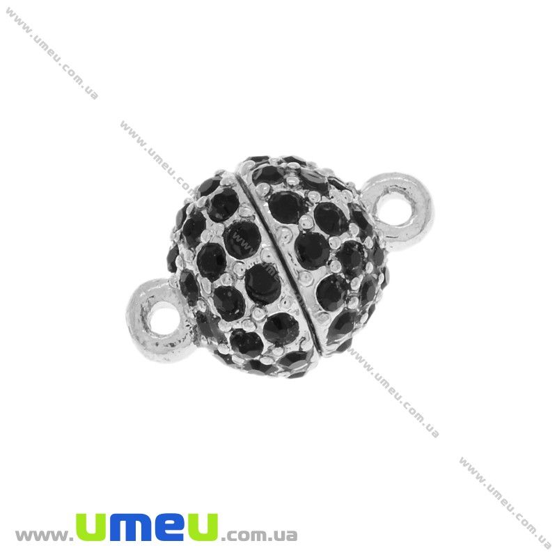 [Архів] Замок магнітний зі стразами, 16х10 мм, Темне срібло, Чорні (ZAM-025863) / 1 шт