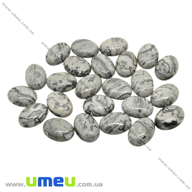 Кабошон нат. камінь Яшма пейзажна сіра, Овал, 18х13 мм (KAB-025994) / 1 шт