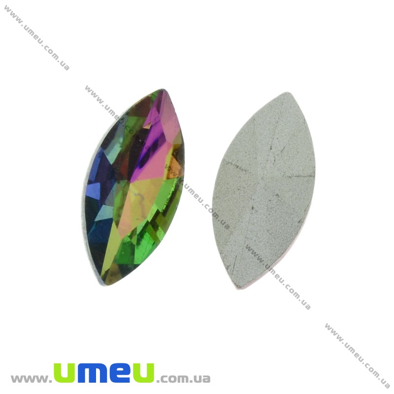 Ріволі скляний, Човник гранований, 15х7 мм, Різнобарвний (KAB-026028) / 1 шт