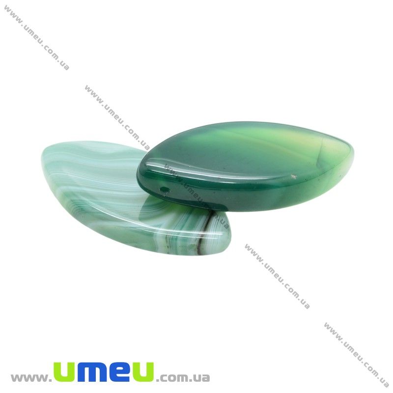 [Архів] Намистина натуральний камінь Агат зелений, 38х19 мм, Човник (BUS-026049) / 1 шт
