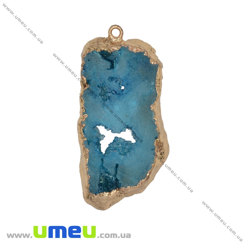 Підвіска з натурального каменю, Друза агату, Блакитна, 47х23 мм (POD-027073) / 1 шт