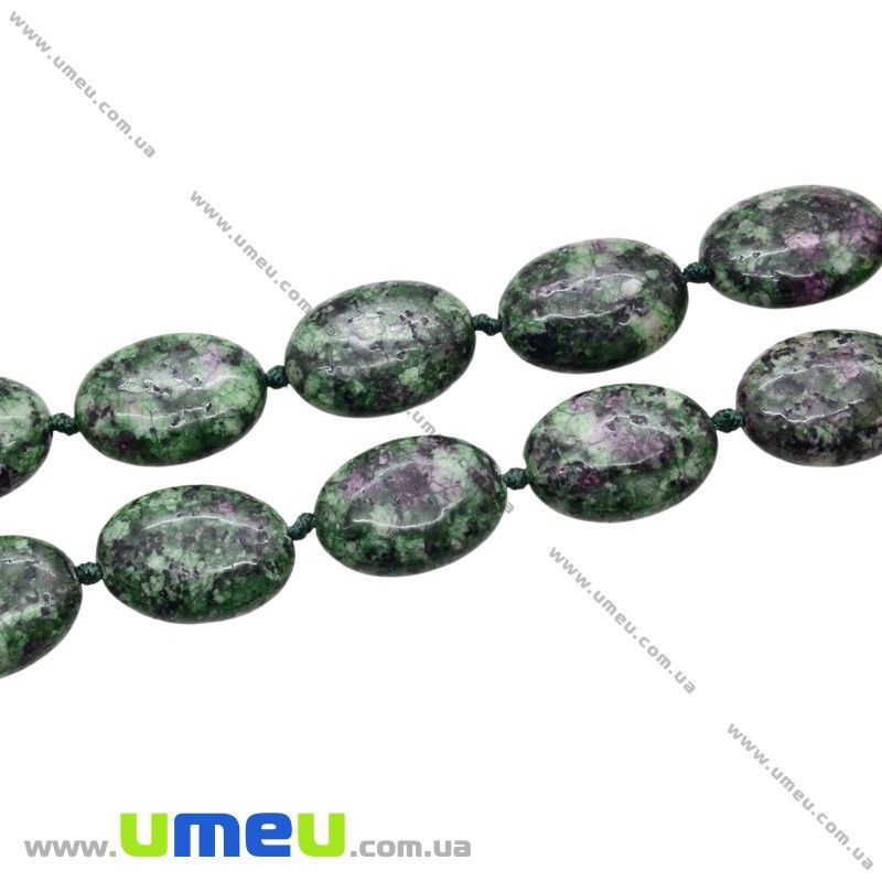 [Архів] Намистина натуральний камінь Рубін в цоізиті, 17х12х6 мм, Овальний плоска (BUS-027208) / 1 шт