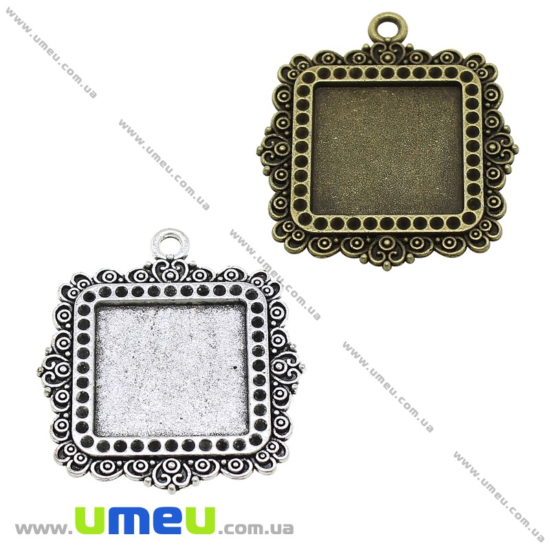 Основа квадратна, 40х35 мм, 20х20 мм, Античне срібло (OSN-028245) / 1 шт
