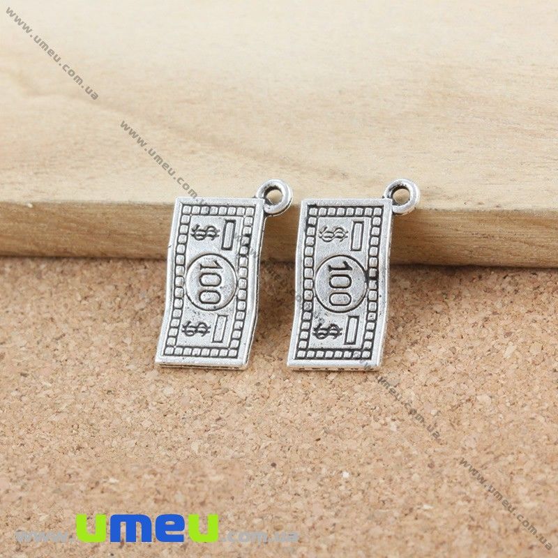 [Архів] Підвіска металева 100 доларів (двухстор.), Античне срібло, 21х13 мм (POD-028282) / 1 шт