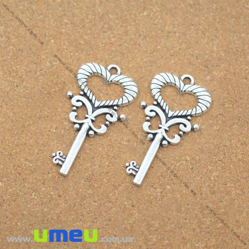 [Архів] Підвіска металева Ключик, Античне срібло, 39х20 мм (POD-028306) / 1 шт